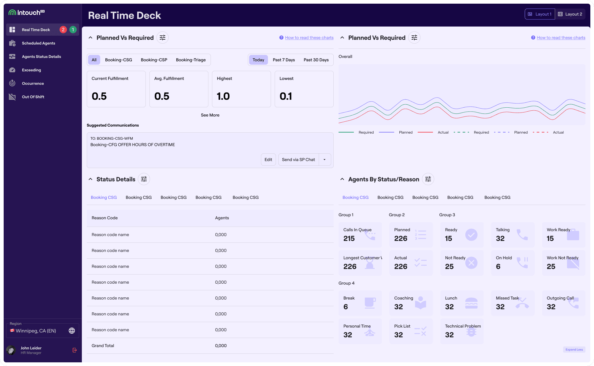 Understanding work statuses at IntouchCX contact centers