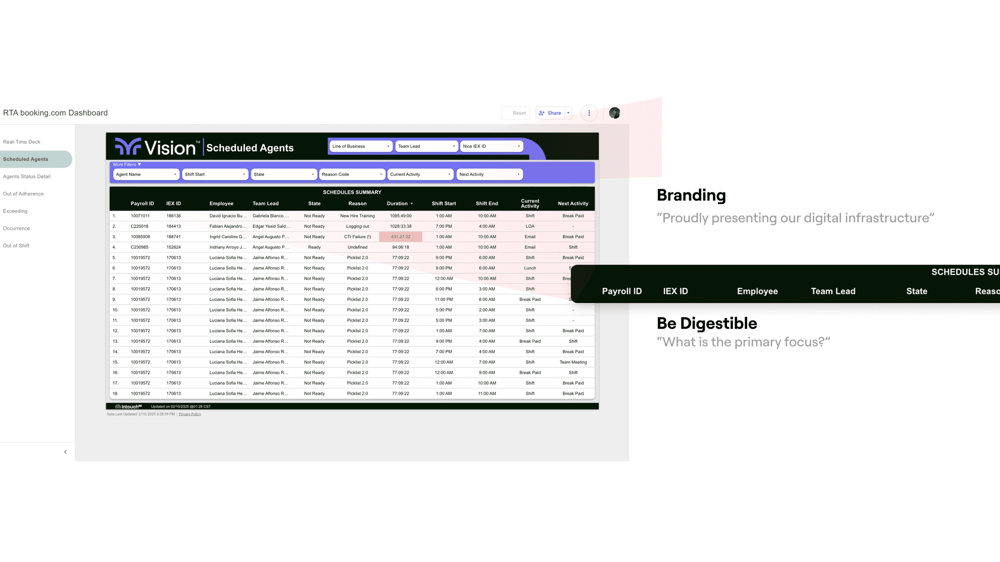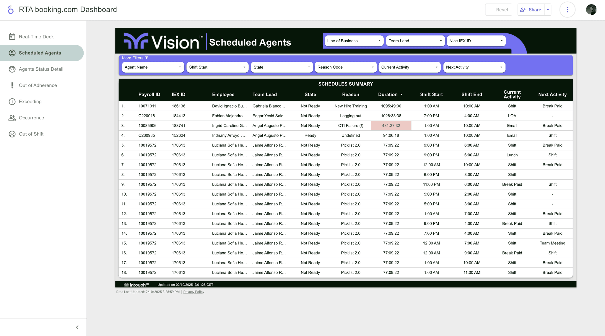 agent's real time performance (aux usage, shift adherence)